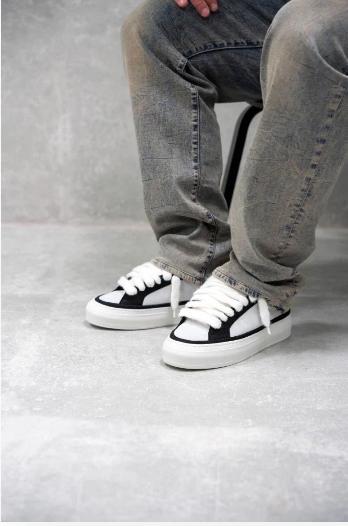 נעלי סניקרס קלאסיות מבית NOMERIS, בעיצוב מינימליסטי ונקי המשלב שחור ולבן בצורה על־זמנית וקלה לשילוב. החלק העליון משלב פאנלים בגווני שחור ולבן ליצירת מראה מאוזן ומודרני, עם שרוכים לבנים עבים ולשון מרופדת לנוחות מקסימלית.